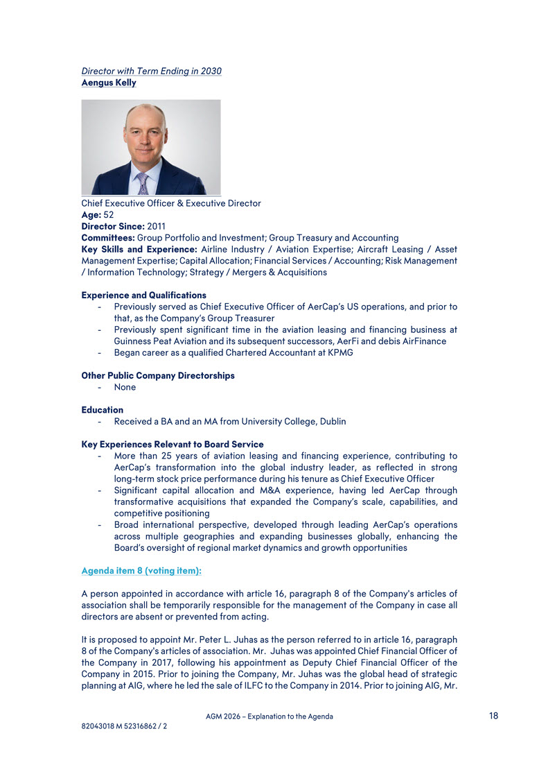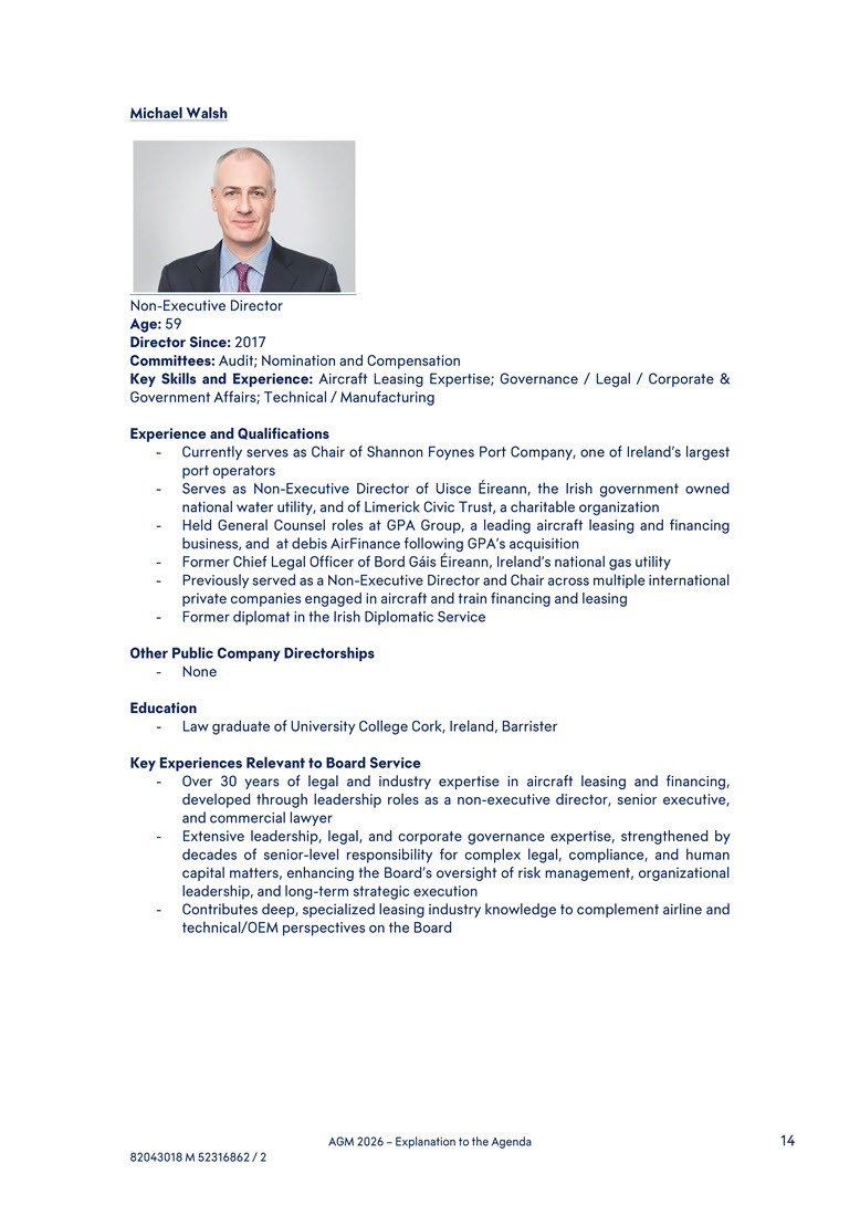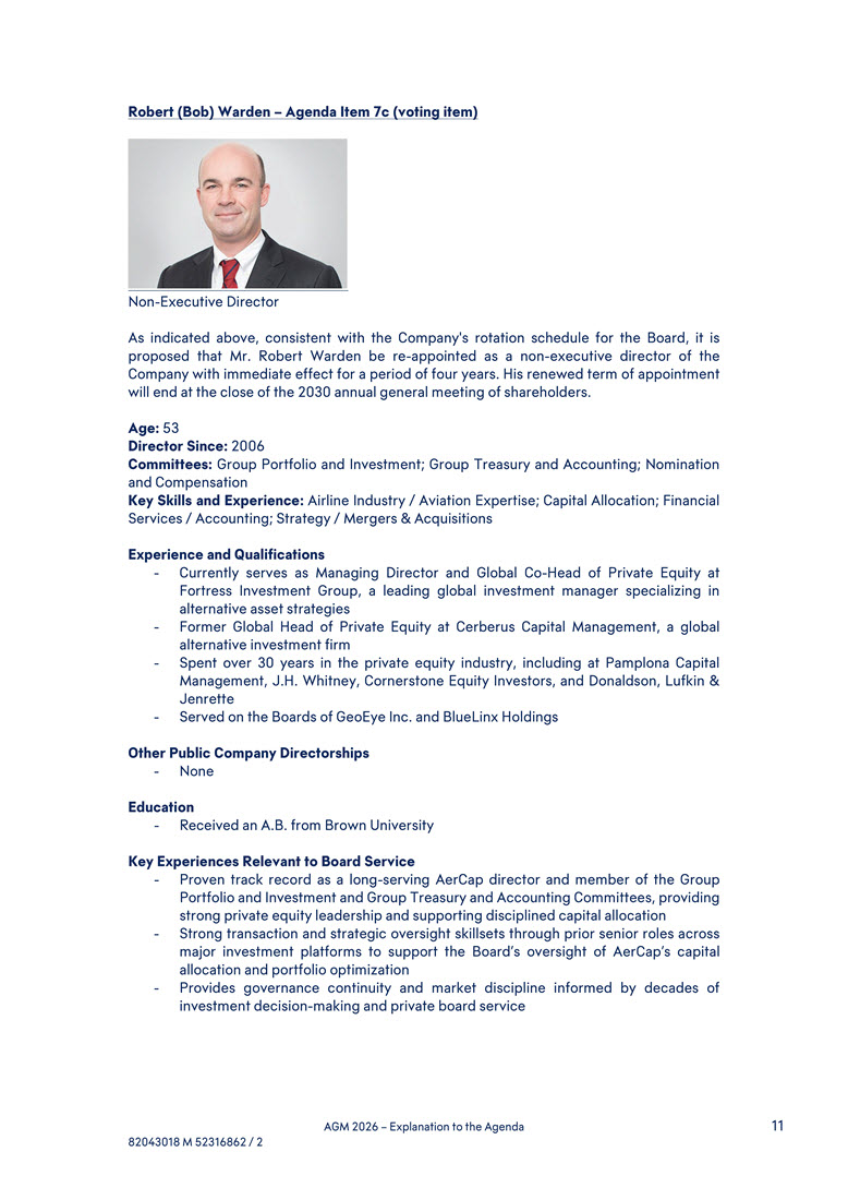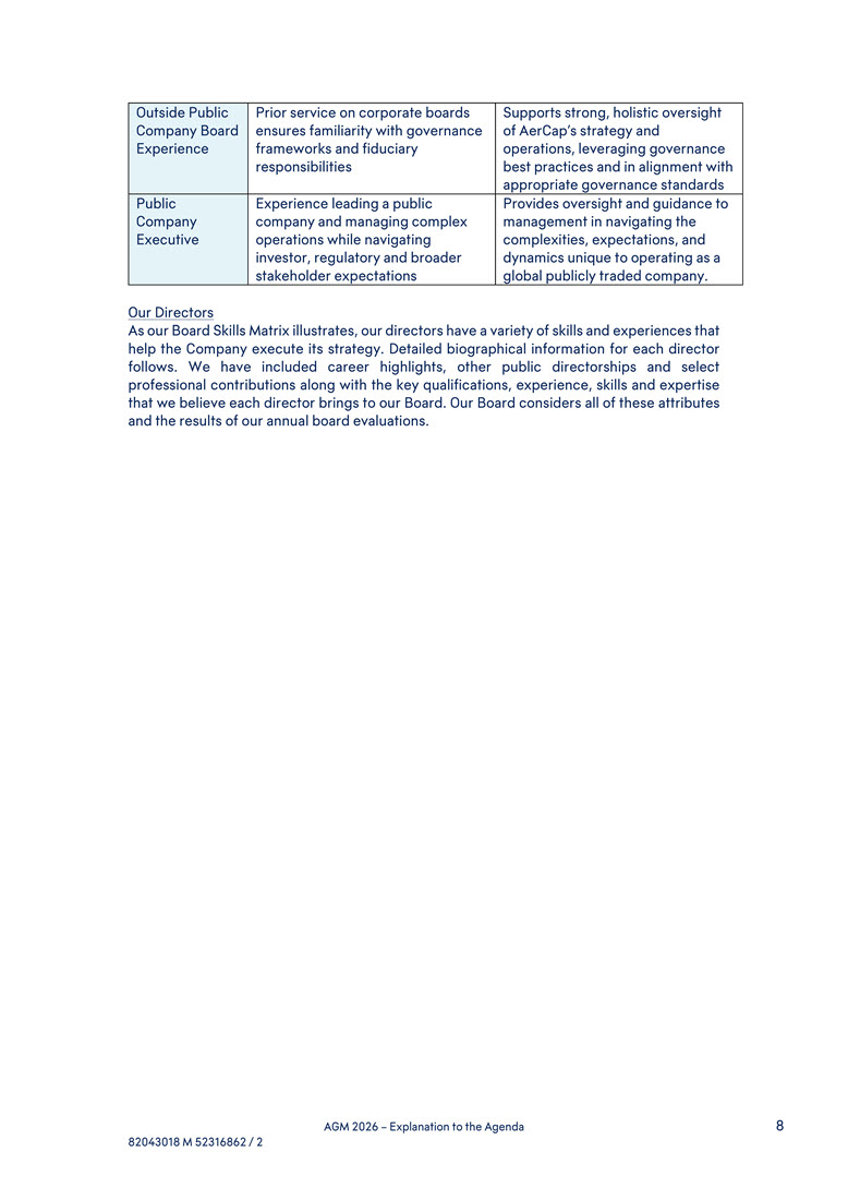 capital allocation and M&A experience, having led AerCap through transformative acquisitions that expanded the Company’s scale, capabilities, and competitive positioning - Broad international perspective, developed through leading AerCap’s