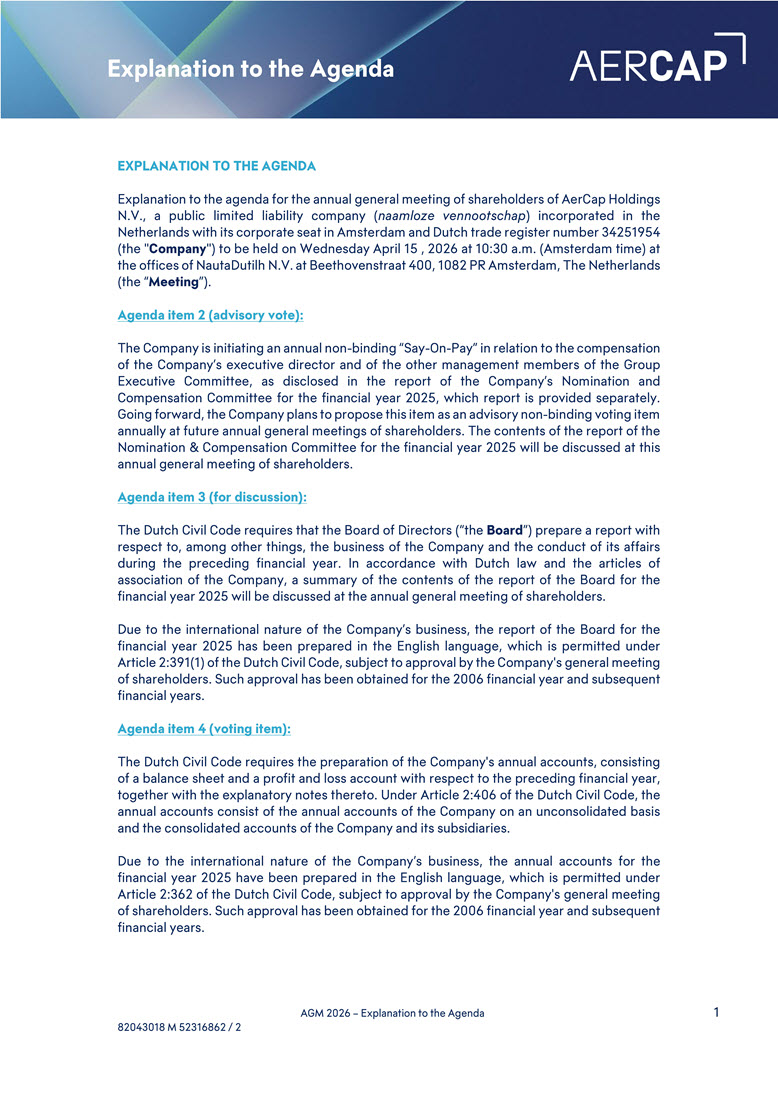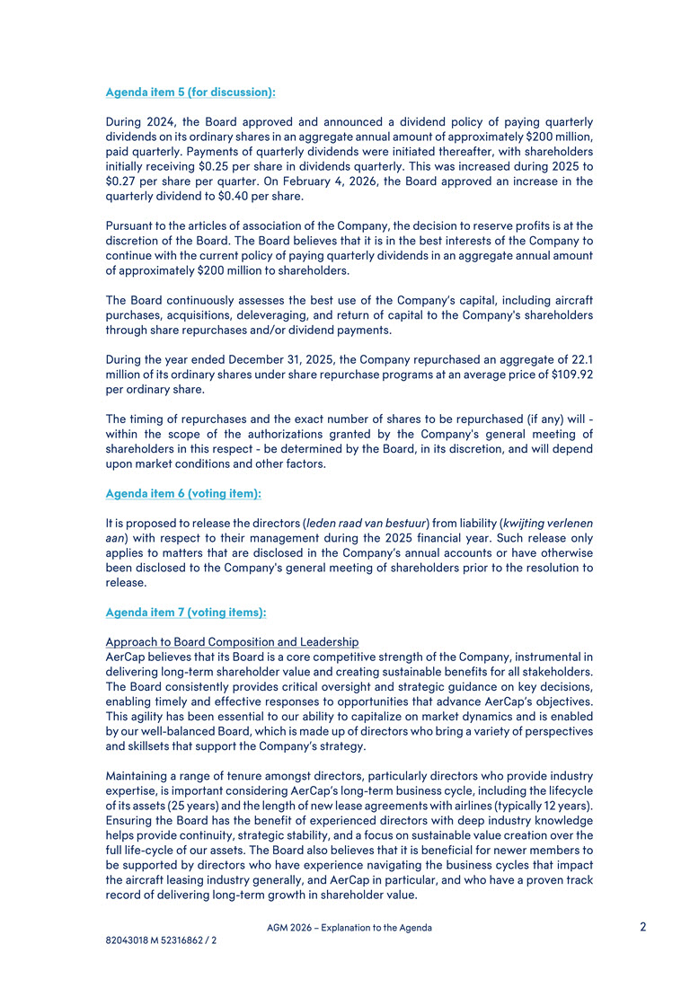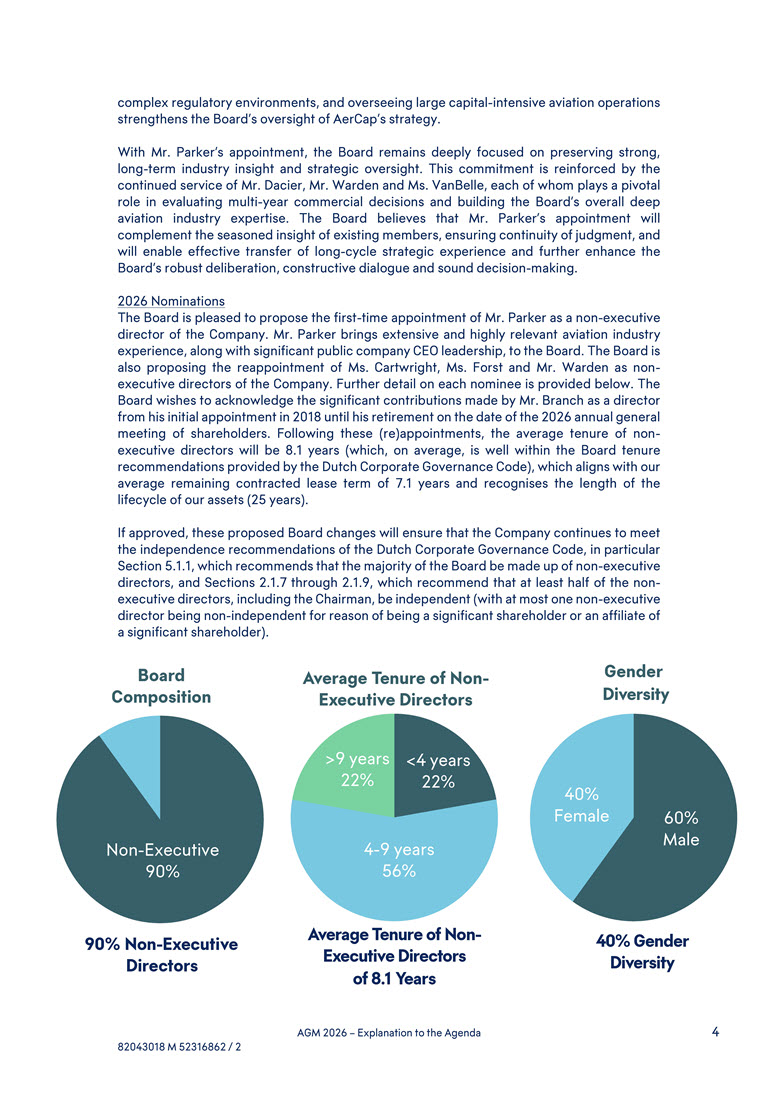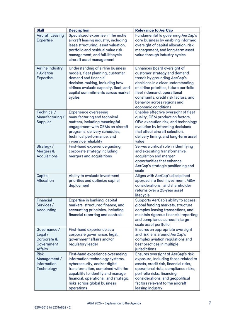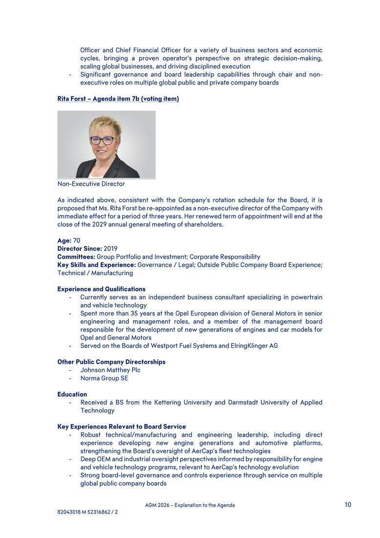 capital allocation and M&A experience, having led AerCap through transformative acquisitions that expanded the Company’s scale, capabilities, and competitive positioning - Broad international perspective, developed through leading AerCap’s