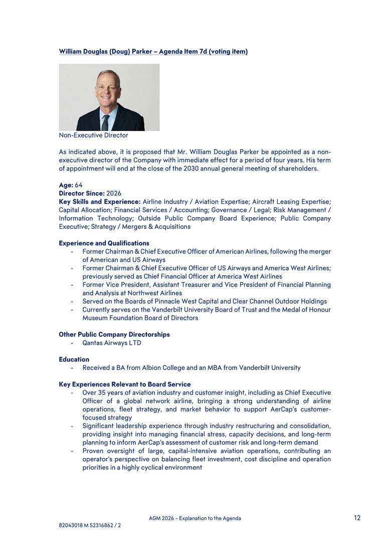 Parker – Agenda Item 7d (voting item) Non-Executive Director As indicated above, it is proposed that Mr. William Douglas Parker be appointed as a non-executive director of the Company with immediate effect for a period of four years. His term of