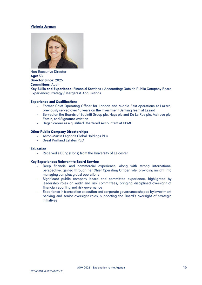 operations across multiple geographies and expanding businesses globally, enhancing the Board’s oversight of regional market dynamics and growth opportunities Agenda item 8 (voting item): A person appointed in accordance with article 16,