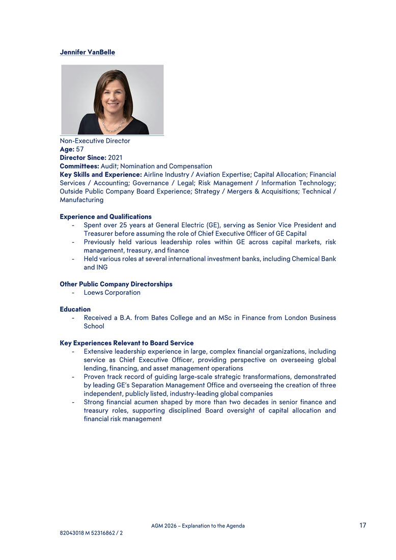 appointment will end at the close of the 2030 annual general meeting of shareholders. Age: 64 Director Since: 2026 Key Skills and Experience: Airline Industry / Aviation Expertise; Aircraft Leasing Expertise; Capital Allocation; Financial