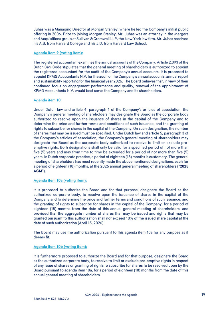 Juhas received his A.B. from Harvard College and his J.D. from Harvard Law School. Agenda item 9 (voting item): The registered accountant examines the annual accounts of the Company. Article 2:393 of the Dutch Civil Code stipulates that the