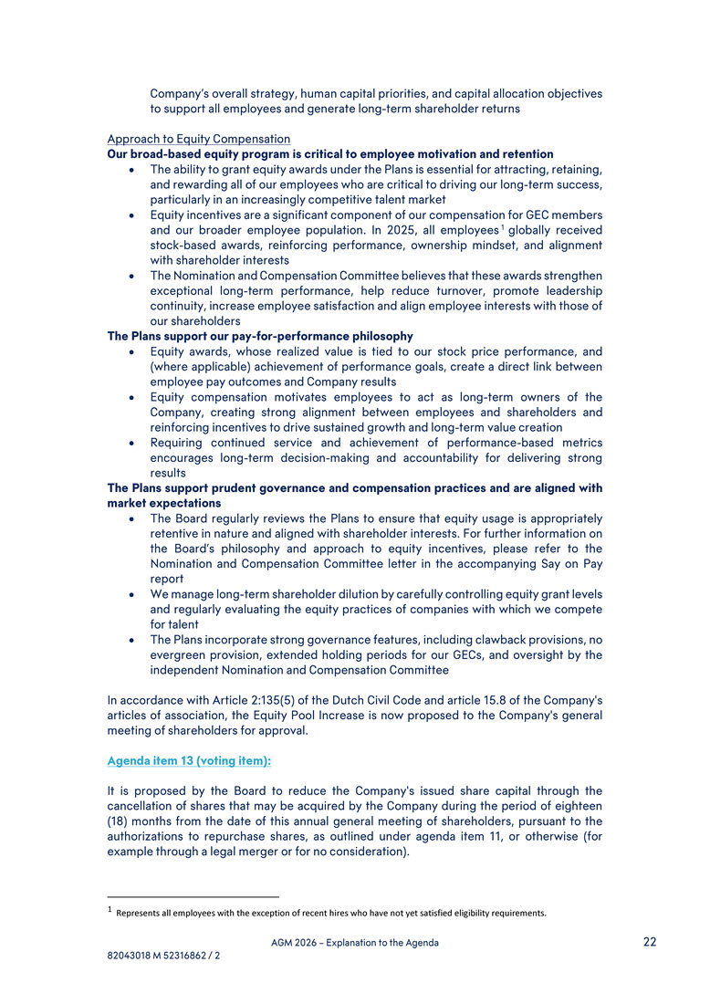 oversight by the independent Nomination and Compensation Committee In accordance with Article 2:135(5) of the Dutch Civil Code and article 15.8 of the Company's articles of association, the Equity Pool Increase is now proposed to the Company's